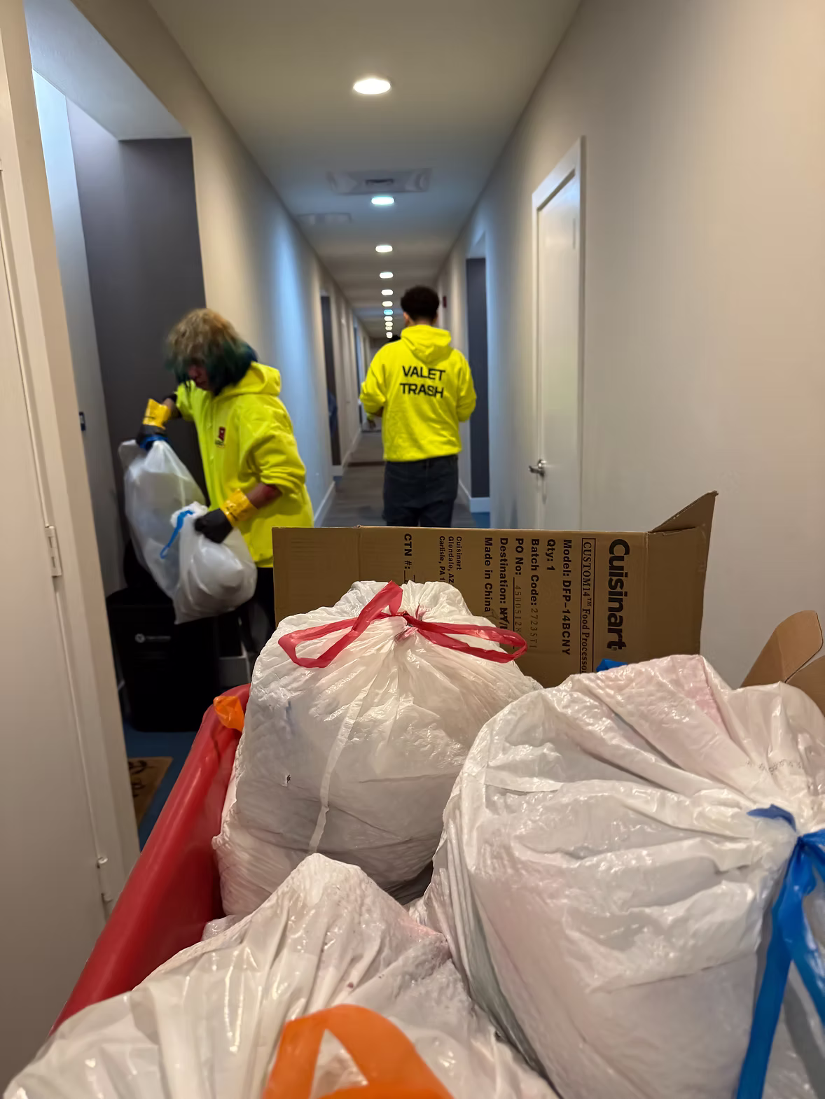 Our valet trash crews service your community five nights a week, providing consistent doorstep pickup residents can rely on. That consistency keeps hallways, breezeways, and common areas cleaner with less effort from your team.